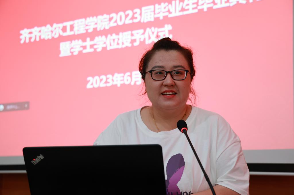 学校教务长张静宣读beat365中文官网2023届学士学位授予文件。