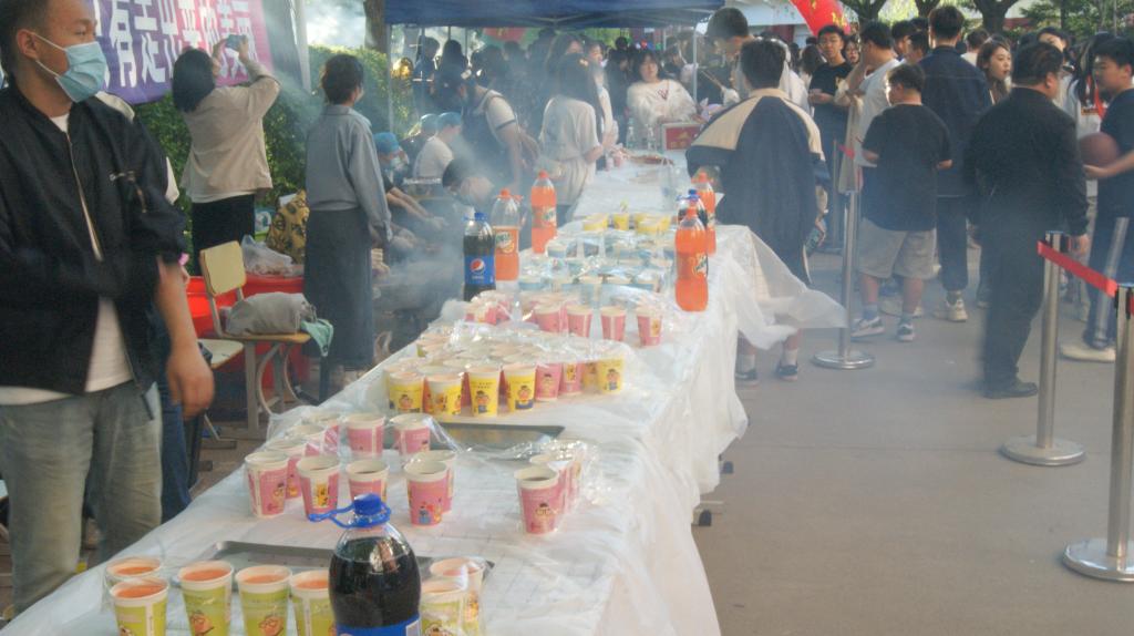 建筑工程系在烟火气十足的烧烤摊旁,贴心地为毕业生们准备了雪碧、可乐、果汁等饮品,并摆出精美造型。在初夏里为毕业生们送上一份清凉、一份甜蜜,同时表达对毕业生们的美好祝福,祝愿他们今后的人生之路顺风顺水,一路长虹!