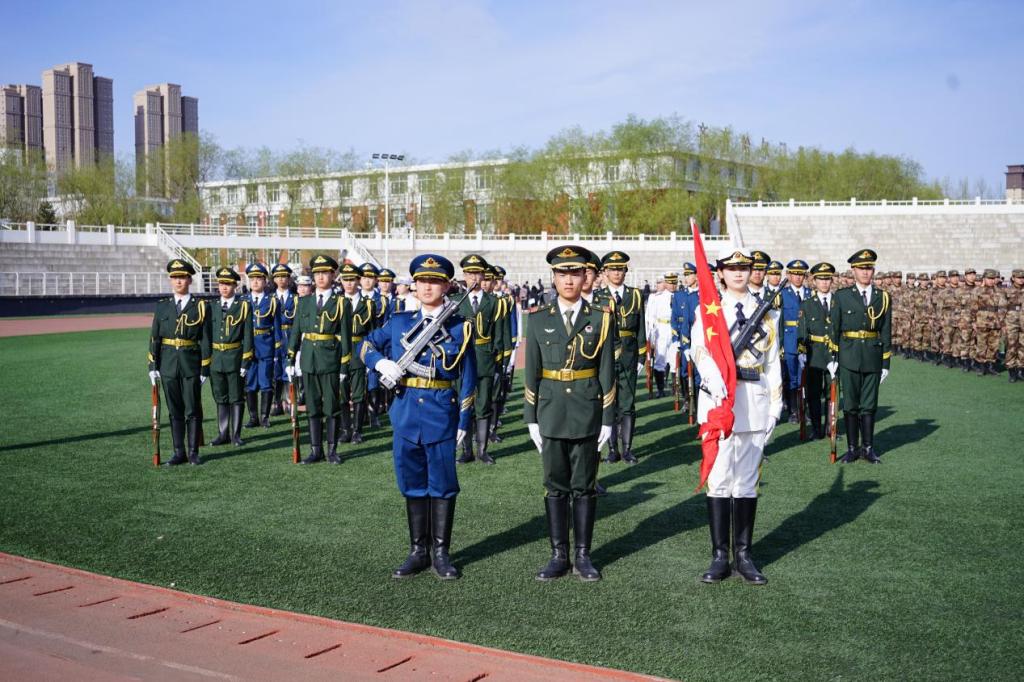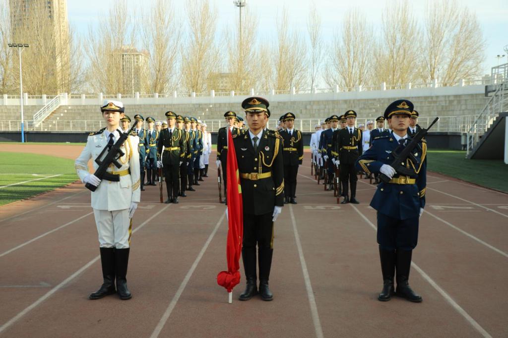 伴随着教官团铿锵有力的步伐,“青春践行二十大·奋楫扬帆新征程”主题升旗仪式拉开序幕。