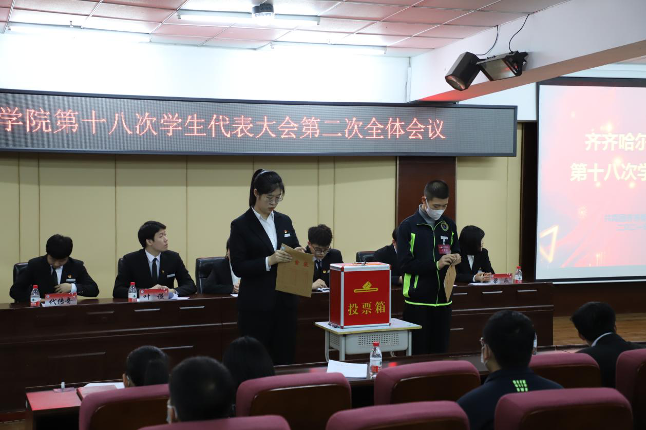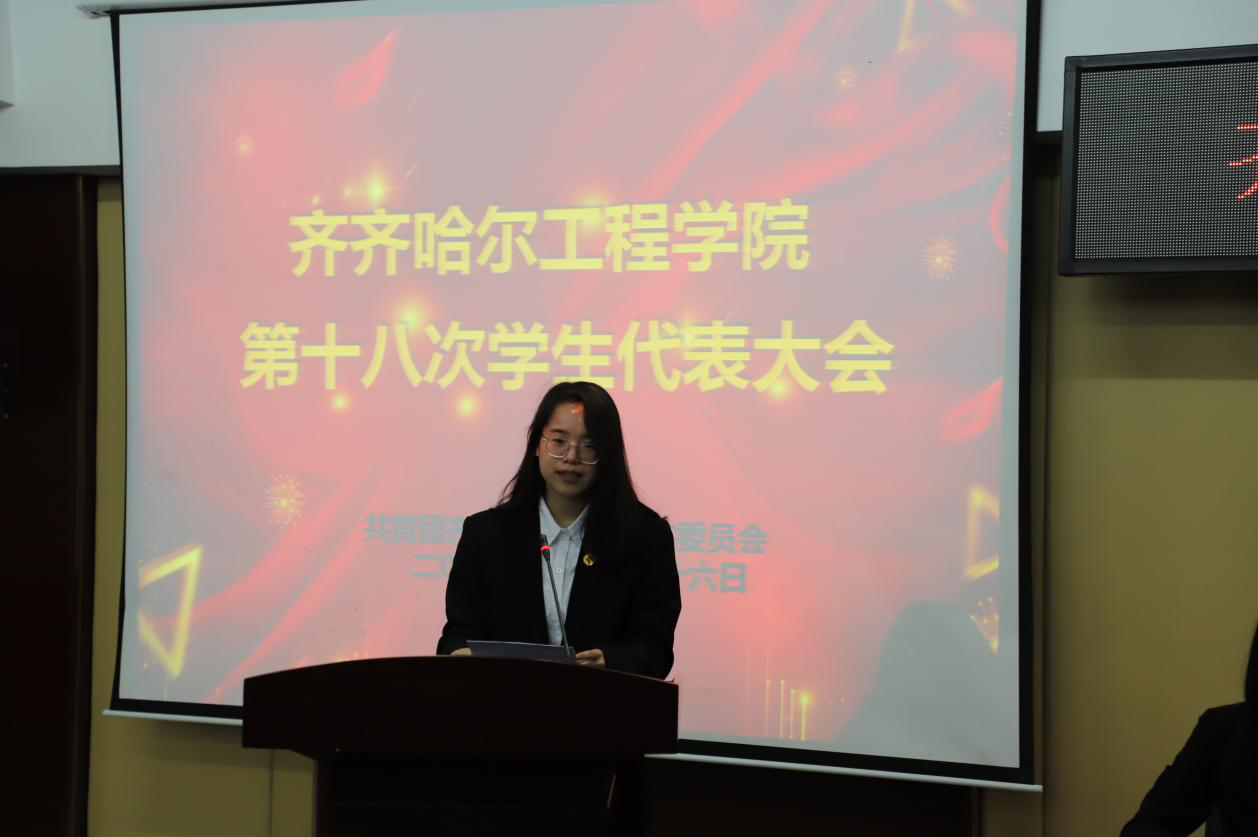 11月26日,学校第十八次学生代表大会在图书馆501报告厅隆重举行,学校副院长张振笋、团委书记郭明敬、各系学生工作副主任、学生会指导教师和学生代表共计150余人参加。