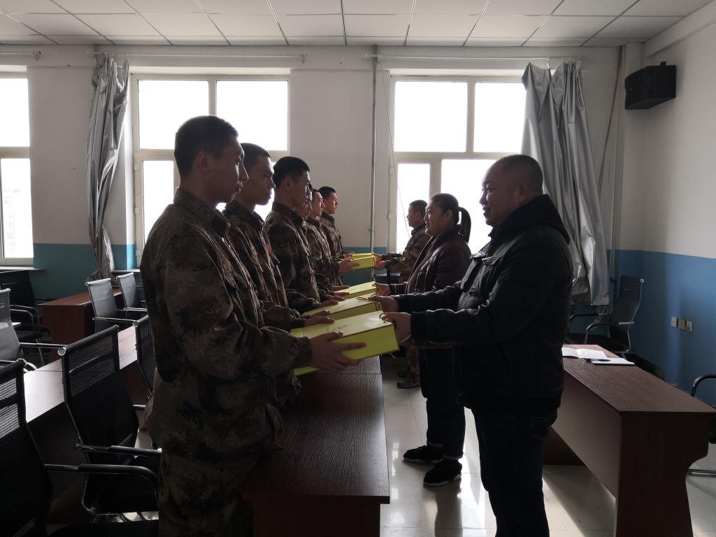 欢送会之前,学生工作处副处长郭明敬,征兵工作负责人孙晓芳等代表学校专程赴梅里斯区看望应征入伍学生,赠送纪念品,并勉励珍惜军营生活,锻炼成长。