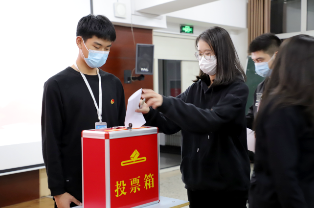 学生代表根据候选人的工作陈述及现场演讲情况,郑重而有序地将选票投入投票箱。经过投票选举,刘柏序、王旭、刘楠三名同学当选为学生会主席团成员;陈宣宏、张皓文、黄艳丽、杨嘉赫、金征、王骏达六名同学为各部门负责人。