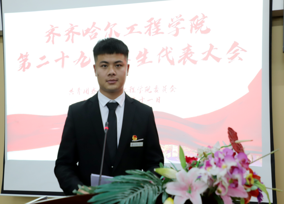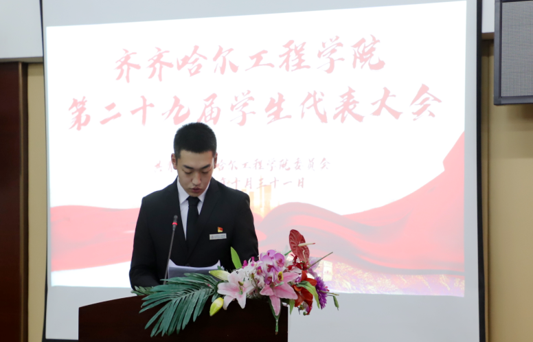 10月31日17点,学校第二十九届学生代表大会在图书馆501报告厅举行,副院长张振笋出席会议,团委书记郭明敬、各系学生工作副主任、各系学生会指导教师以及学生代表共200余人参加。