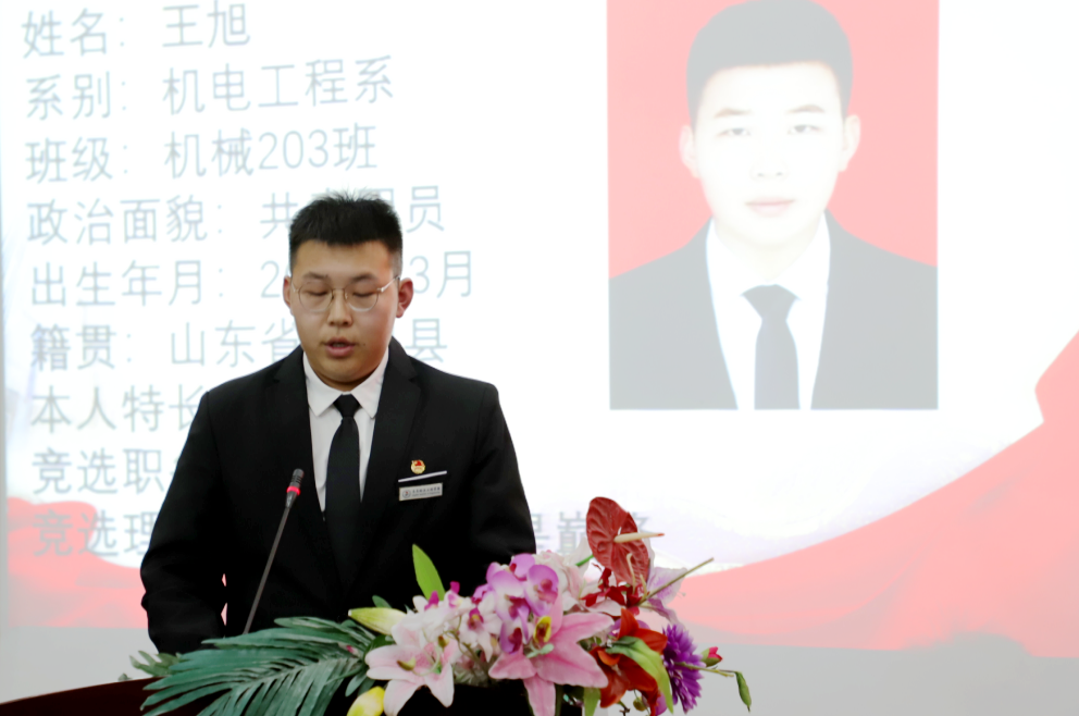 学生代表各部长侯选人进行竞选陈述。17位竞选人员回顾了自己过往的工作和学习,对校学生会未来发展提出自己的建议。
