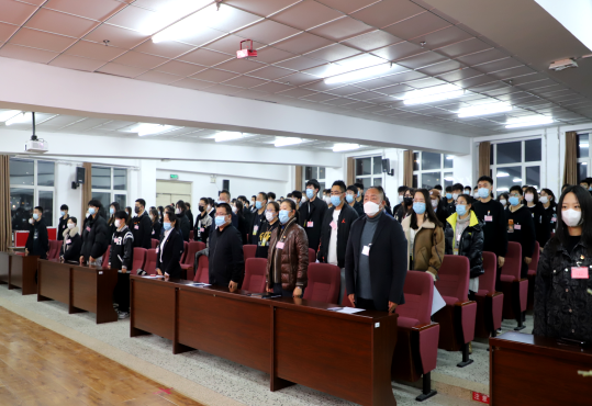 两届学生会干部交接仪式。新干部纷纷表示,会以身作则,发挥榜样带头作用,做好每一项工作,不辜负大家的期望。