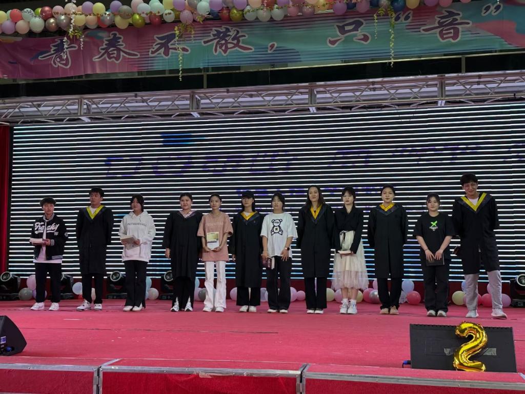 接下来的诗朗诵《我拿什么留住你》,歌曲《倔强》《明天,你好》《盛夏》《十年》等精彩的节目接踵而至。随后,舞台背景的大屏幕中播放了学弟、学妹们录制好的祝福视频,祝愿学长们前程似锦,不要忘记母校,让在座的学长们泪目。