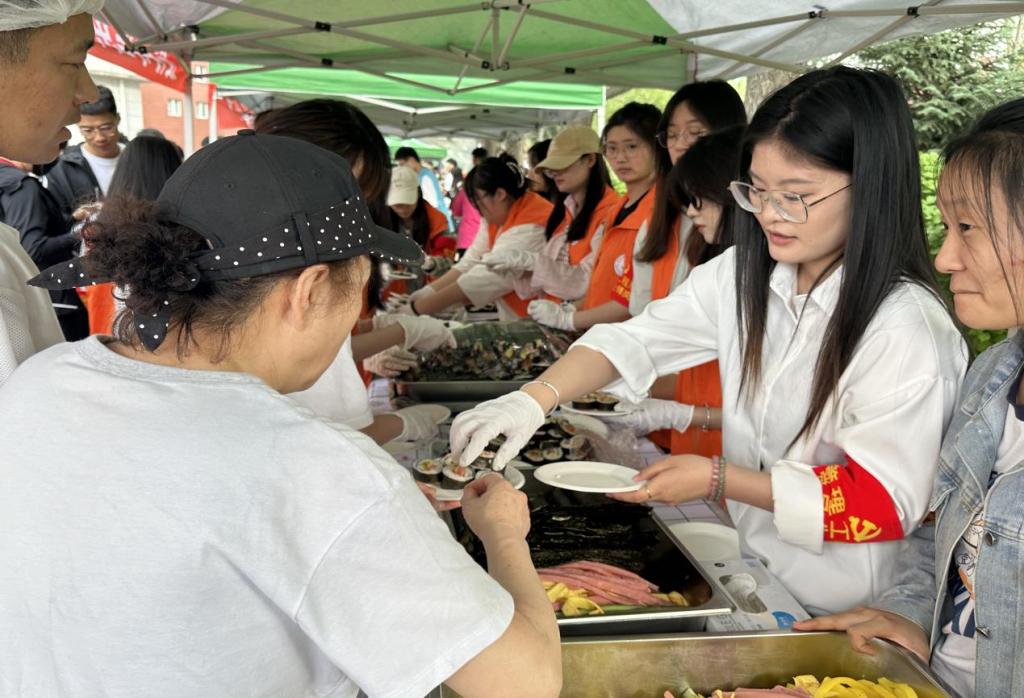 在总务处伙食科的带领下,各食堂及档口也积极参与美食街活动,展示各自的特色美食,有粽子、烤肉拌饭、酿皮等特色小吃近20种,让美食街的内容更加丰富,希望毕业生们能够在未来的人生道路中经常想起大学食堂的各种美味,并在人生道路上乘风破浪,勇往直前。