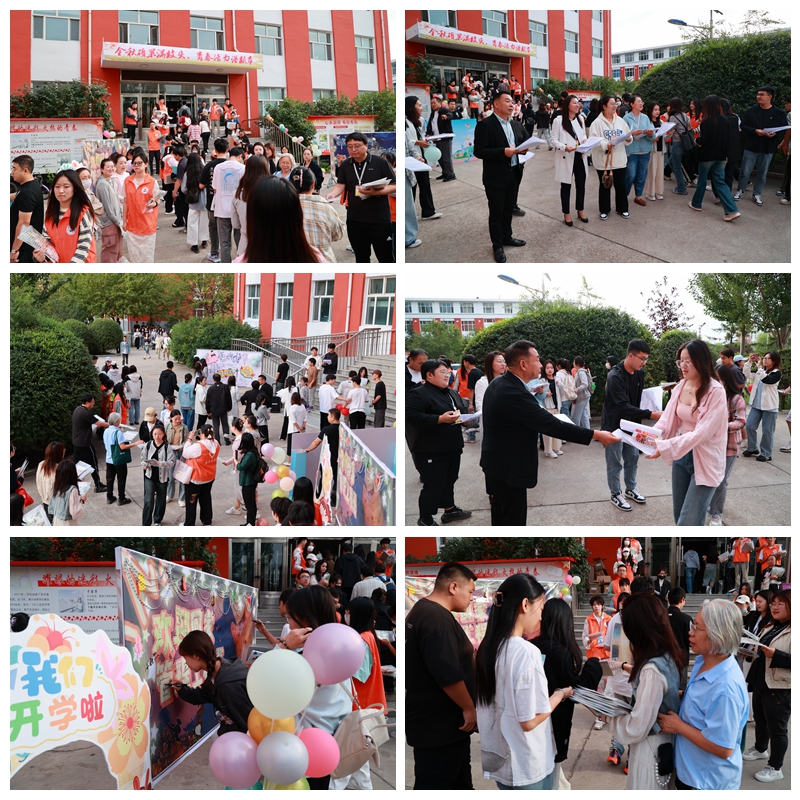在一号教学区前,学生工作处负责人王丽萍与康护工程系、信息工程系领导、辅导员及生涯导师共同举行“开学第一课”欢迎仪式。两系为学生准备新学期小礼品,并逐一发放,希望学生们能以饱满的热情投入到新学期的学习和生活中。