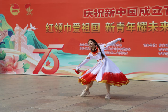 为庆祝中华人民共和国成立75周年,弘扬爱国主义精神,激发广大青年的爱党爱国热情,9月28日上午,团市委组织全市共青团各战线青少年共同开展“红领巾爱祖国新青年耀未来”大手拉小手活动,学校团委、大学生艺术团、学长教官团、大学生青年志愿者协会共100余人参加。