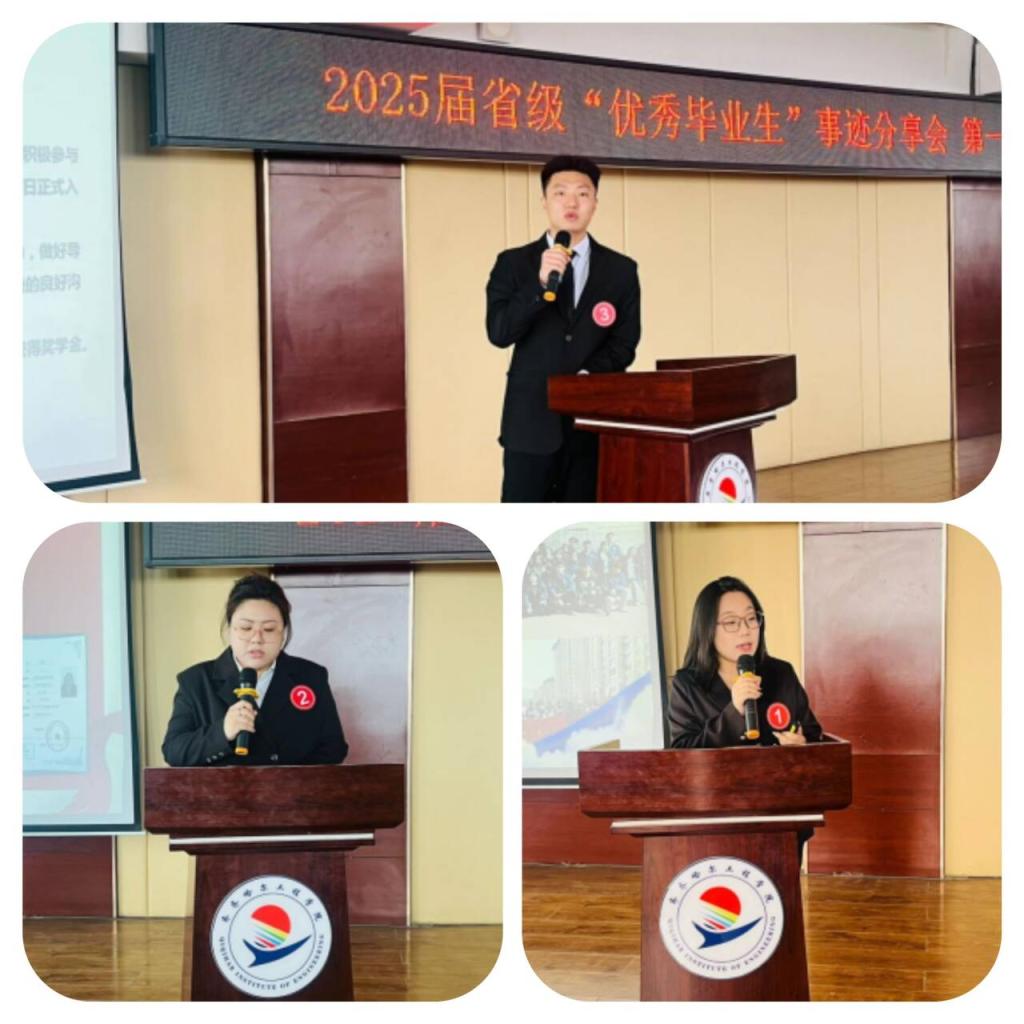 5月25日至28日,“青春榜样,朋辈引领”2025年黑龙江省普通高等学校省级“优秀毕业生”事迹分享会在学校图书馆501报告厅举行。11名省级优秀毕业生代表以奋斗为笔、以梦想为笺,向480名学弟学妹们讲述成长心路,为学风建设注入鲜活范本,为校园注入精神力量。
