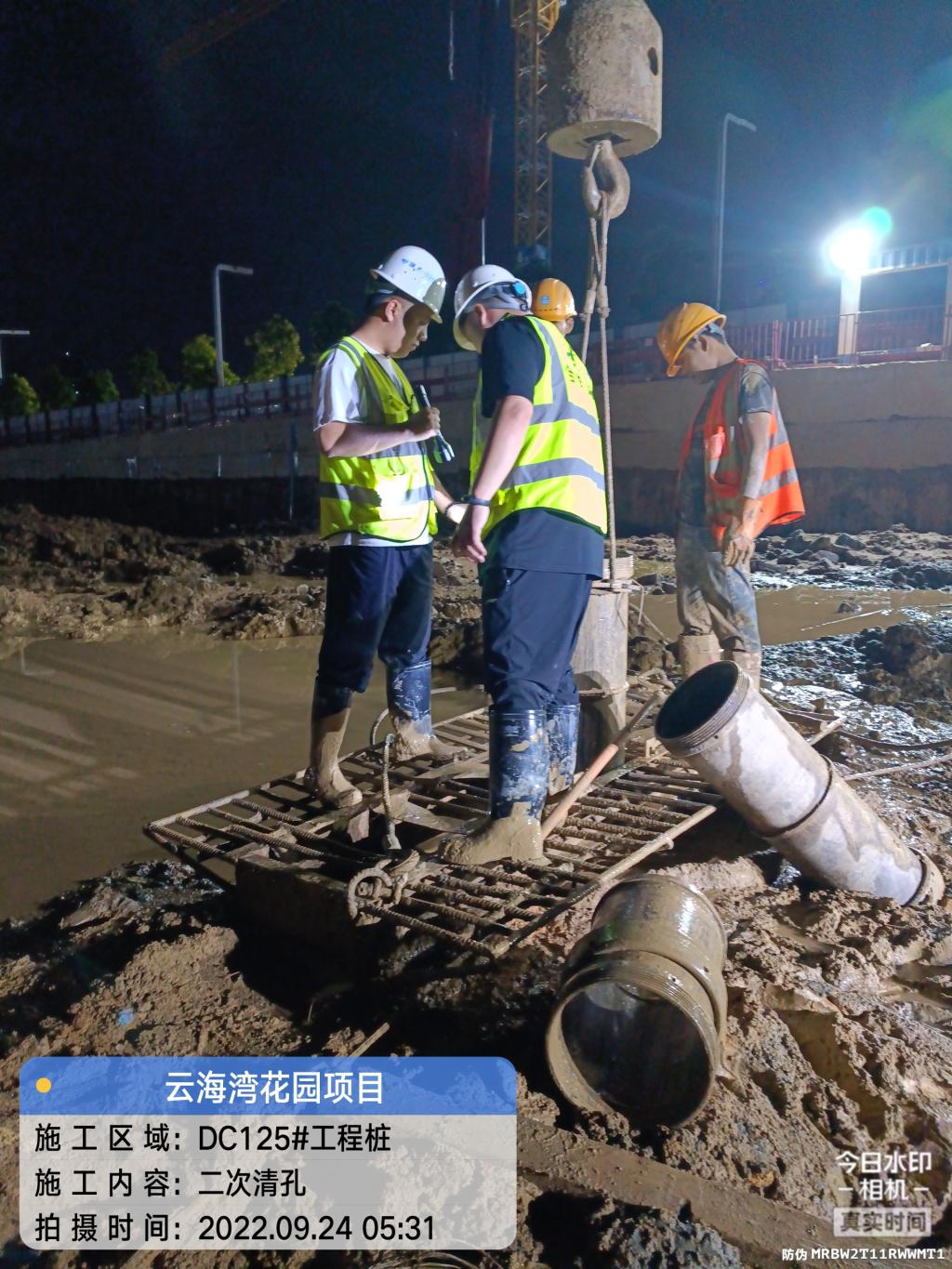左一董建华,在云海湾花园项目工程现场