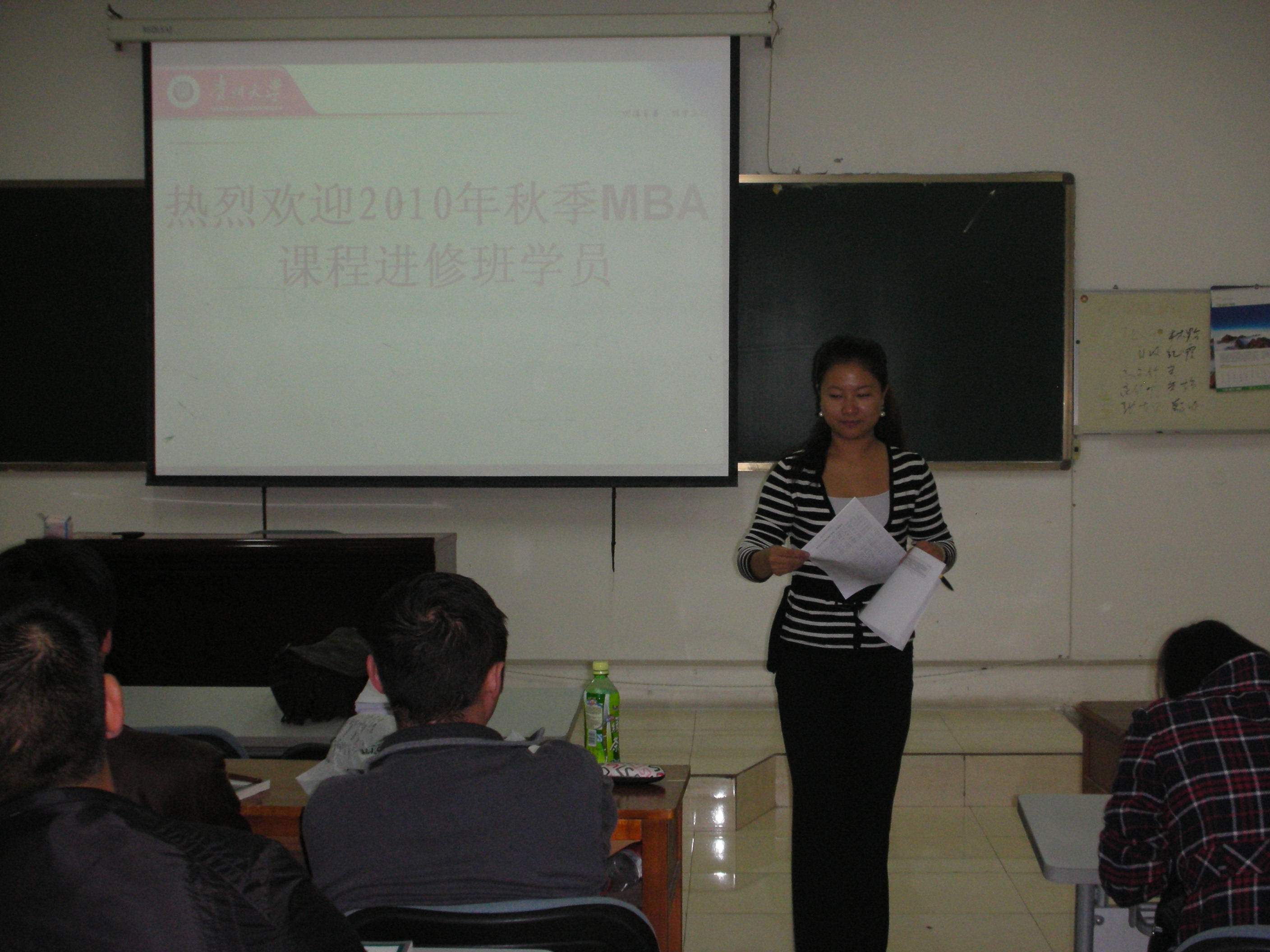 2010年10月10日上午英国正版365官方网站SMBA1007(课程进修班)在英国正版365官方网站蔡家关校区举行了隆重的开班仪式。仪式上英国正版365官方网站MBA教育中心主任李烨教授作了主题发言,李烨教授首先向学员们介绍了英国正版365官方网站的基本校情和MBA项目、SMBA项目的相关情况,并对新入学学员提出了新的希望。同时承担MBA教务管理的卿老师对新学员提出了相应的教学要求。仪式由MBA教育中心副主任刘梅副教授主持。