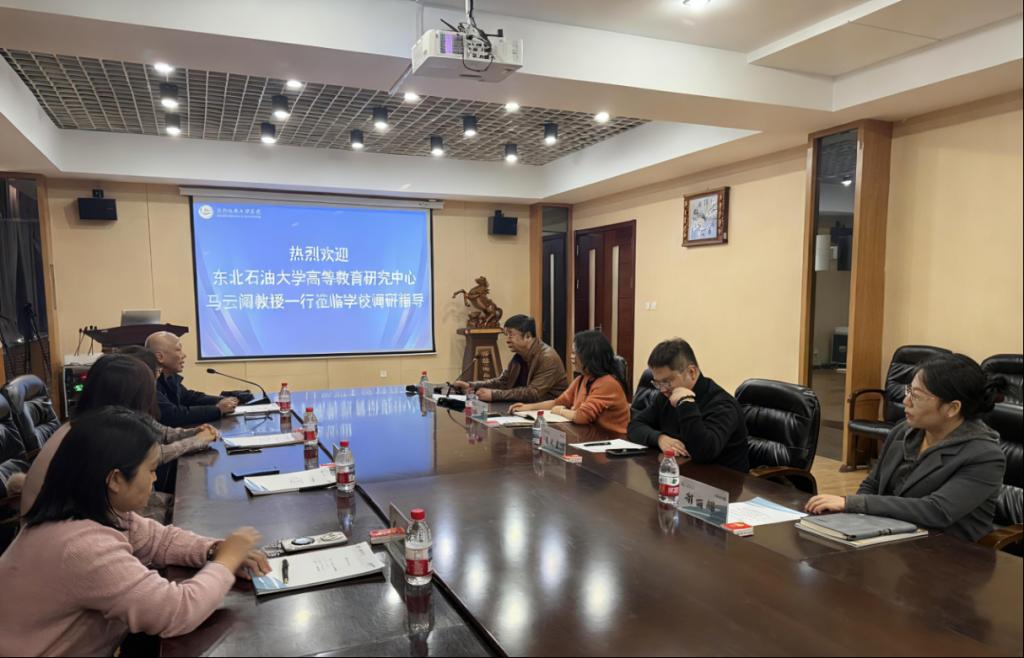 11月17日至18日,东北石油大学高等教育研究中心主任马云阔一行五人来学校调研交流。学校领导及相关部门负责人热情接待并陪同调研。在副校长张静的陪同下,马云阔主任一行实地走访了学校产教融合基地,深入了解基地的建设与运行情况。通过现场观摩与交流,调研组对学校产教融合的前瞻规划与系统化实施给予了充分肯定。随后,双方在图书馆603南会议室举行座谈。创校校长、理事长曹勇安,张静以及教务处相关人员参与交流。曹勇安作...