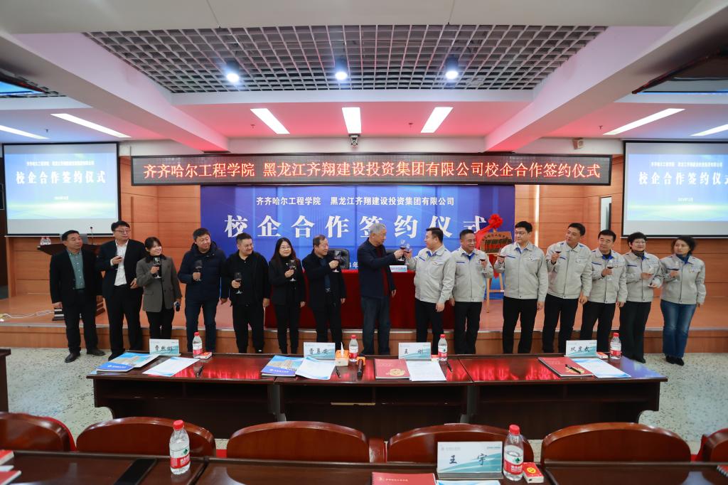 为进一步深化校企合作,推进产教融合,提升人才培养质量,12月19日下午,学校与黑龙江齐翔建设投资集团有限公司在图书馆601举行校企合作签约仪式。创校校长、理事长曹勇安,院长、党委副书记曹然彬,副院长张静,齐翔建设投资集团党委书记、董事长王刚,党委副书记巩显武,副总经理李勇、西朋,总工程师顾业举、总经济师武宁宁、人力资源部部长张薇、齐齐哈尔市齐翔建筑工程有限公司执行董事张万明、黑龙江智建全过程咨询有限...