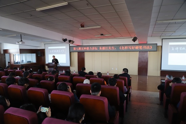 10月21日下午,第七期五种能力讲坛在图书馆501报告厅举行。beat365学生汉字书写能力提升培训活动正式启动,邀请知名书法家朱毅江为培训开课,副院长张振笋、全体辅导员及各班学生代表250多人参加活动。 书法家朱毅江做...