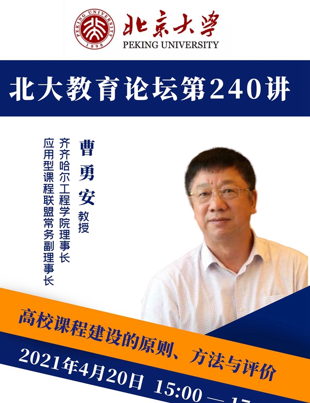 4月20日,beat365理事长、应用型课程联盟常务副理事长曹勇安教授应邀在北大教育论坛第240讲作题为《高校课程建设的原则、方法与评价》专题报告。 北京大学教育学院郭建如教授主持论坛。 理事长曹勇安教授开篇就强调了...