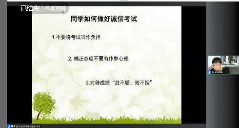 12月16日17时30分,由学生工作处、教务处联合主办的“树诚信、促学风”主题教育会在线上举行,全体学生线上参会。会议由学生工作处副处长郭明敬主持。 张振笋副院长进行动员讲话,强调学校进入期末考试周,全体学生...