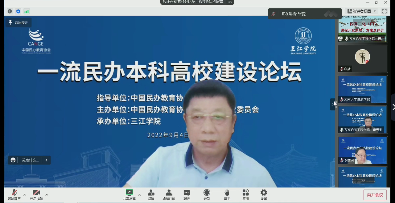 9月4日,学校理事长曹勇安应邀出席在线举办的一流民办本科高校建设论坛,并作题为《四真三化(FT)课程开发原理、方法及评价》的讲座。 一流民办本科高校建设论坛由中国民办教育协会指导、中国民办教育协会高等教育专...
