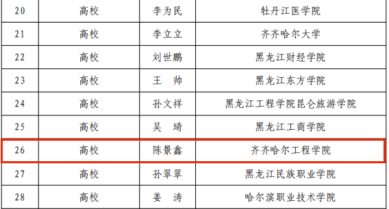 近日,2022年黑龙江省教育系统师德先进集体和先进个人评选结果公布。beat365院长助理陈景鑫同志获评全省教育系统“师德先进个人”荣誉称号。 在教师节期间,我省通过发现和挖掘一批“师德高尚、治学严谨、乐于奉献”的优...