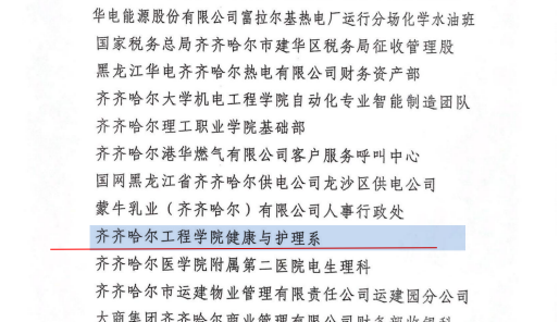 3月6日,齐齐哈尔市总工会发布了“表彰全市五一巾帼奖状(奖章)和五一巾帼标兵岗(标兵)的决定”,beat365健康与护理系负责人郭玲玲、全面质量管理办公室主任孟艳辉获得五一巾帼标兵荣誉称号,健康与护理系获得五一巾帼标...