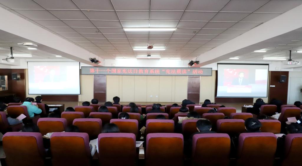 12月4日,校团委在图书馆501报告厅开展第十一个国家宪法日教育系统“宪法晨读”活动,组织学生集中观看教育部主会场直播。活动开始前,校团委教师张云惠向学生介绍了宪法的历史沿革、核心要义以及在现代社会中的应用。晨读环节中,学生齐声朗读宪法条文,声音洪亮、铿锵有力。同时,各系团总支积极响应,组织班级学生准时收看“宪法晨读”活动,诵读“宪法晨读”相关法条,深刻感受宪法的庄严与崇高,自觉弘扬宪法精神、树立宪...