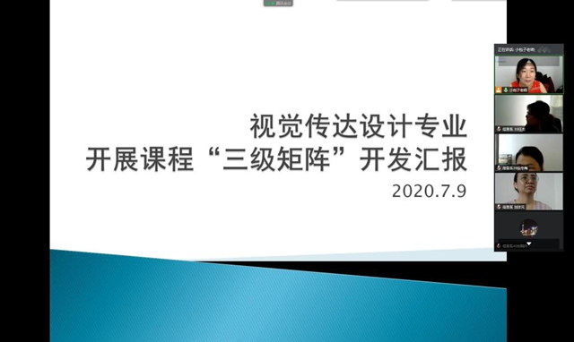 7月9日,视觉传达设计专业在线组织全体教师进行课程“三级矩阵”开发交流。 专业负责人姜岩主持交流,并强调课程设计必须坚持以学习产出为导向的设计理念。各位教师结合所授课程展开讨论,就自己的课程设计交流分享心...