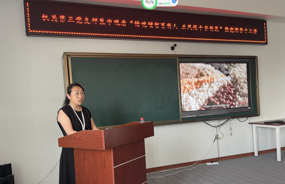 7月31日下午,机关第三党支部全体党员在图书馆608室收听收看2023年高校党组织示范微党课,讲授的题目为《铸魂增智育新人 正风促干书新篇》,支部宣传委员逯娅娜主持。 本次活动旨在深入学习党的二十大精神,深入学习...