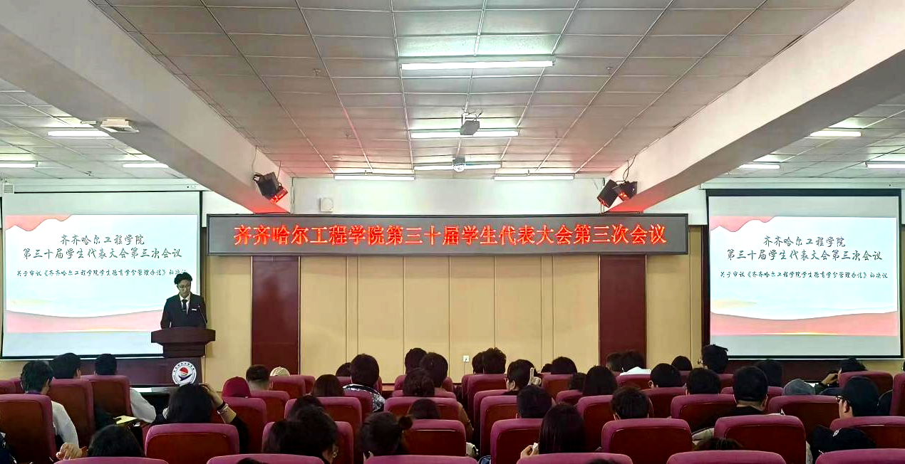 11月21日,学校第三十届学生代表大会第三次会议在图书馆501报告厅举行。团委副书记王雪、机电工程系学生会指导教师张勇、建筑工程系学生会指导教师刘子豪、管理工程系学生会指导教师刘天缘、信息工程系学生会指导教师刘铭炜、健康与护理系学生会指导教师岳国鑫及160名学生代表参加大会。会议议题为修订《beat365中文官网德育学分管理办法》。 第三十届学生会权益部部长范云天宣读关于《beat365中文官网学生德育学分管理办法》...
