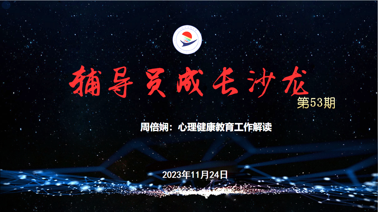 11月24日,为进一步帮助和强化提升辅导员心理健康教育工作业务能力,更好地服务于学生的健康发展和全面成长成才,第53期辅导员成长沙龙在二号教学区2102培训室召开,本期沙龙学生工作处邀请了学生发展中心周倍娴、石伟两位老师为全体学工人员进行培训,主题为心理健康教育工作解读,全体学生工作者40余人参加。周倍娴老师介绍了心理健康教育四级网络体系和大学生心理健康调查表UPI两部分,她首先阐述心理健康教育工作应该有谁来...