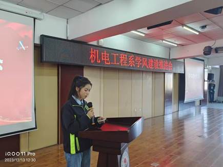 12月13日中午,机电工程系在图书馆501召开学风建设推进会。机电工程系党总支副书记郭明敬、机电工程系学生会指导教师张勇,各班级团支部书记、班长、学习委员共155名学生参加。会议由机械232班杨蝶同学主持。本次推进会旨在进一步加强我系的学风建设,提高学生的综合素质,营造良好的学习氛围,推动我系学风建设的深入开展。会议首先由今年获得过国家奖学金、国家励志奖学金和多次参加学科竞赛的优秀学生代表汽服212班李浩男等6...