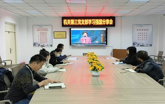 12月14日下午,机关第三党支部召开学习强国分享会,支部全体党员参加,组织委员郭凤宝主持会议。 会上观看了纪录片《榜样6》,张桂梅老师艰苦办学的先进事迹和大爱无疆的奉献精神让大家深受感动。全体党员表示,要学习和传承张桂梅老师的“红梅”精神,追求至善至美的师德大爱,不忘初心,牢记使命,在教书育人的道路上奋勇前行。会上,公布了本支部党员“学习强国”学习总积分和年度积分情况,并由支部书记王丽萍为“学习强国...