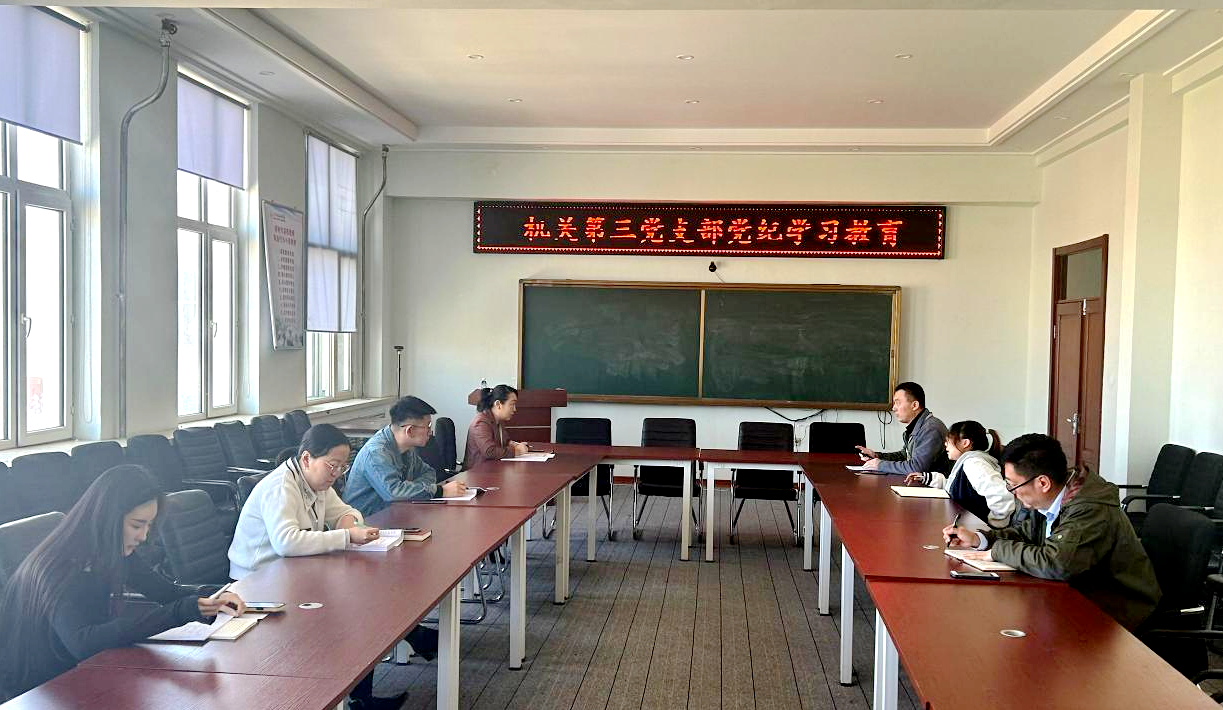 4月28日上午,机关第三党支部在图书馆608室召开党员党纪学习教育会,党支部书记王丽萍主持了本次会议。会上,王丽萍表示,《中国共产党纪律处分条例》是党中央站在党和国家战略全局的高度,对全面从严治党、加强纪律建设作出的重大部署,体现了中国共产党始终坚持严的基调和全面加强党的纪律建设,不断增强自我净化、自我革新、自我提高的能力。随后,组织委员郭凤宝同志领学了《中国共产党纪律处分条例》的前两章相关内容。...