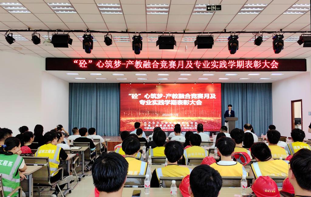 7月30日下午,建筑工程系在二号教学区2508会议室召开了“砼”心筑梦-产教融合竞赛月及专业实践学期表彰大会。建筑工程系党总支书记、负责人徐明、教务处副处长郝丽娜、建筑工程系主任助理王梓玮、中建二局第四建筑工程有限公司项目经理战乃超、中国能源建设集团东北电力第二工程有限公司项目经理张德志、中建二局第四建筑工程有限公司技术负责人孙大伟出席会议,建筑工程系全体教师和在齐齐哈尔市区实习的学生参加。会议伊始...