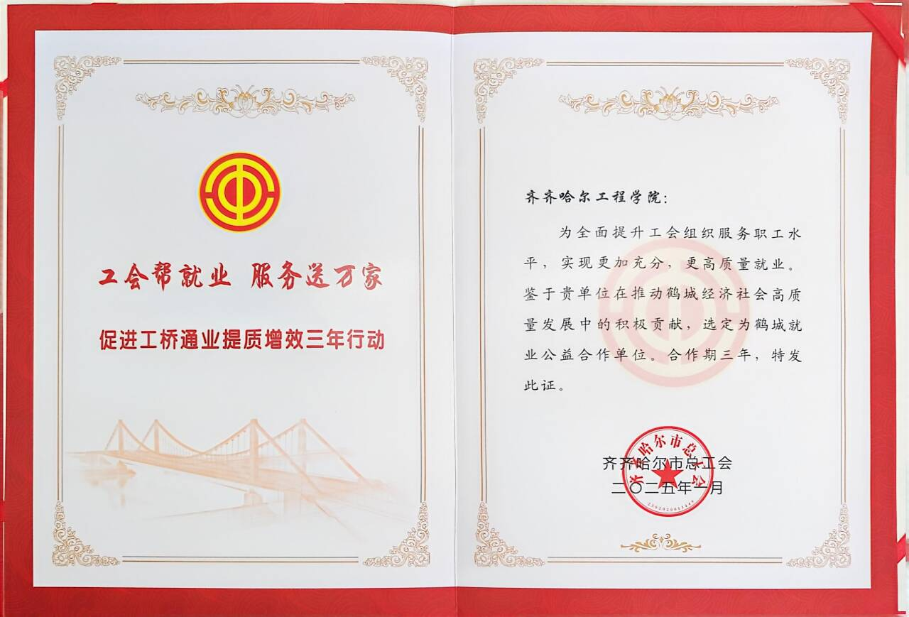 3月12日,全市工会系统促进“工桥通业”提质增效动员部署会议在市总工会二楼会议室召开。会上,市总工会公布了关于选定(聘)鹤城就业公益合作单位(企业)和推荐官(形象大使)结果,并颁发了鹤城就业公益合作单位(企业)和推荐官(形象大使)代表证书。beat365被选定为“鹤城就业公益合作单位”,并获得荣誉证书。接下来,beat365将积极响应国家和市总工会的号召,利用好地方应用型本科高校资源,充分发挥办学优势,以多年就业工作...