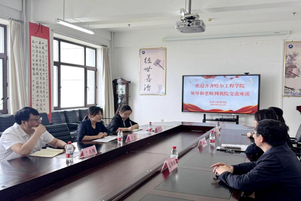 6月12日,土木与管理学院院长徐明、教学副院长于骁晗、经济管理系系主任曲梦露,学院办公室张怡一行赴齐齐哈尔大学经济与管理学院开展会计硕士专业学位(MPAcc)硕士点建设走访调研。齐齐哈尔大学经济与管理学院院长王鸿、教学副院长苗雨君、财务管理系系主任孟芳热情接待。座谈会上,徐明对学院硕士点建设基础、建设条件进行了介绍,表示,当前学院硕士学位点建设正处于关键时期,希望与齐齐哈尔大学经济与管理学院开展导师联...