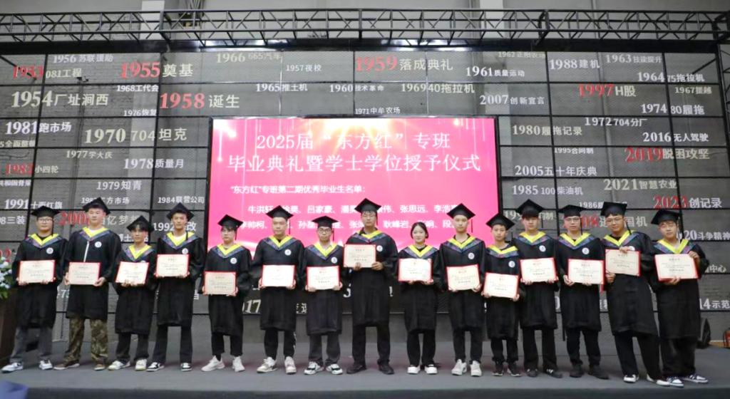 7月30日,学校2025届“东方红”专班毕业典礼暨学士学位授予仪式在中国一拖集团党建活动中心举行。beat365中文官网副校长张静,机电学院院长敖林喆,中国一拖集团有限公司人力资源部(党委干部部)部长朱永生、副部长周祖伟,人才开发科科长郭婧、副科长王路,“东方红”二期专班毕业生及家长共同参加毕业典礼。毕业典礼由机电学院机械学生党支部书记肖璐主持。肖璐首先介绍了“东方红”二期专班基本情况,专班有49名学生,校...