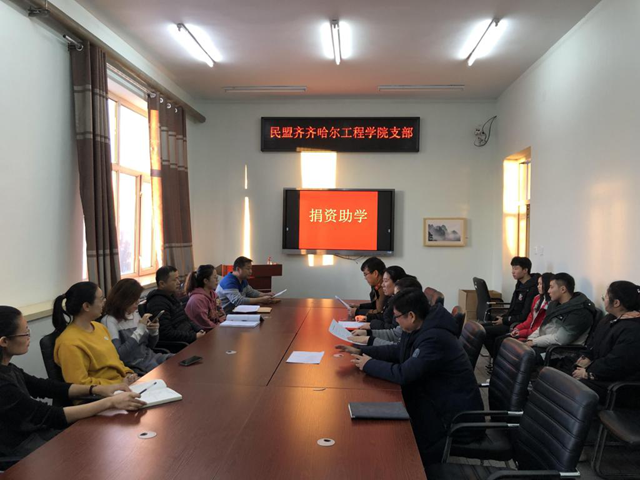 2019年12月31日,民盟齐齐哈尔学院工程支部举行仪式,为信息工程系4名家庭经济特别困难学生捐赠资助金共2300元。支部主委武传宝代表支部对4名受助学生表示慰问,鼓励他们好好学习。受助学生表示,一定刻苦学习,用实...