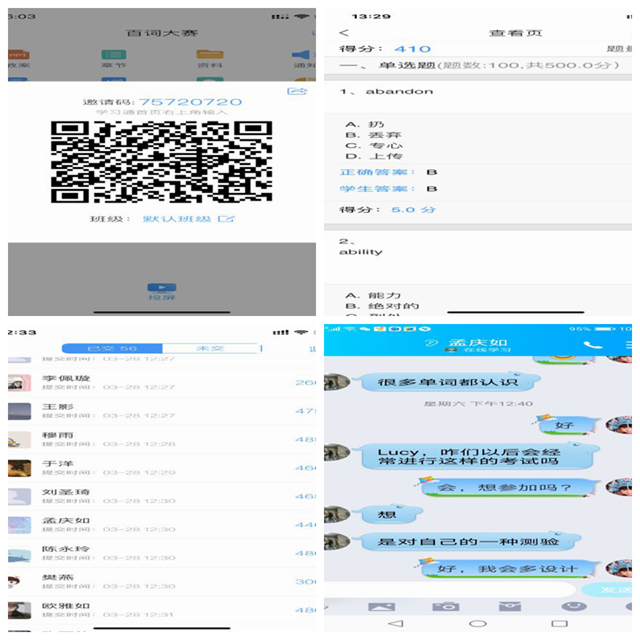 为丰富学生的在线学习活动,3月28日下中午,《大学外语》教师刘双丽指导“外语地带”学生社团筹划并举办了线上英语百词大赛活动。 大赛利用学习通的班级测试功能,首先建立测试班,生成二维码,再由社团指导老师和社...