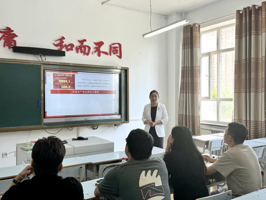 按照学校党委的工作部署,6月19日下午,党委委员张苗在图书馆608会议室开展《中国共产党纪律处分条例》(以下简称《条例》)宣讲活动,并以《学纪于心 守纪于行 以严明的纪律强化履职尽责》为题作专题辅导报告。机电工程系汽服专业教师党支部、信息工程系视觉专业教师党支部教师党员参加。张苗从学纪于心入手,对新修订的《中国共产党纪律处分条例》进行全面解读。指出,《条例》以习近平新时代中国特色社会主义思想为指导,全...