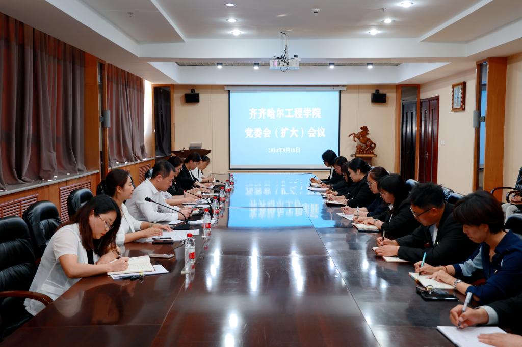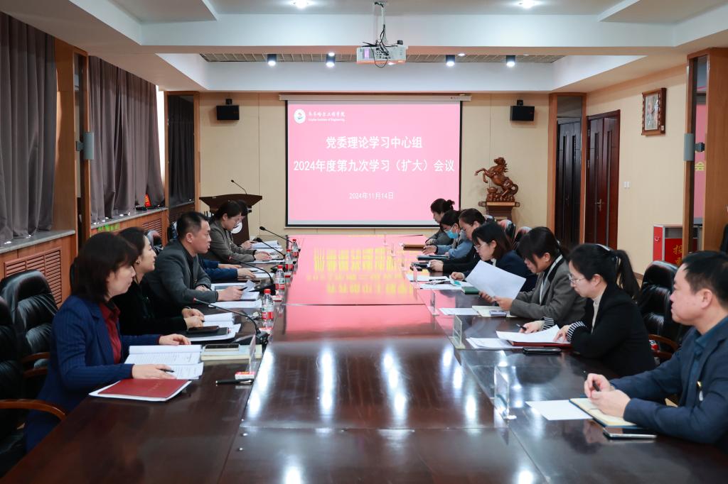 11月14日下午,学校党委理论学习中心组2024年度第九次学习(扩大)会议在图书馆603南会议室召开。党委书记郭伟东主持会议。院长、党委副书记曹然彬,党委副书记、副院长陈景鑫,党委委员、副院长白雪,党委委员、党委组织部部长、党委教师工作部部长王丹,党委委员、党委宣传统战部负责人张苗出席会议,各二级单位党组织书记列席参加。会上,党委理论学习中心组成员分别领学了中央经济工作会议主要精神、黑龙江省教育大会精神...