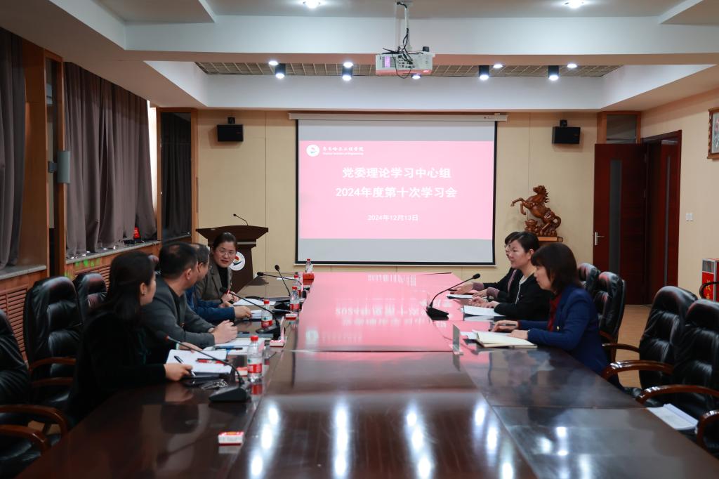 12月13日下午,学校党委理论学习中心组在图书馆603南会议室召开2024年度第十次学习会议。党委书记郭伟东主持,院长、党委副书记曹然彬,党委副书记、副院长陈景鑫,党委委员、副院长白雪,党委委员、党委组织部部长、党委教师工作部部长王丹,党委委员、党委宣传统战部部长张苗出席。会上,党委理论学习中心组成员分别领学了习近平总书记关于推动高质量发展重要论述和《中国共产党巡视工作条例》等内容。会议指出,党的二十大报...